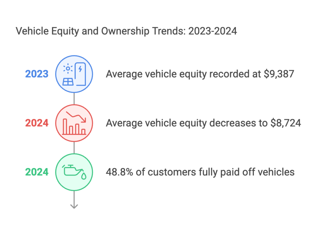 Notably, while the average vehicle equity has seen a decline, there has been a significant increase in the percentage of customers who have fully paid off their vehicles.