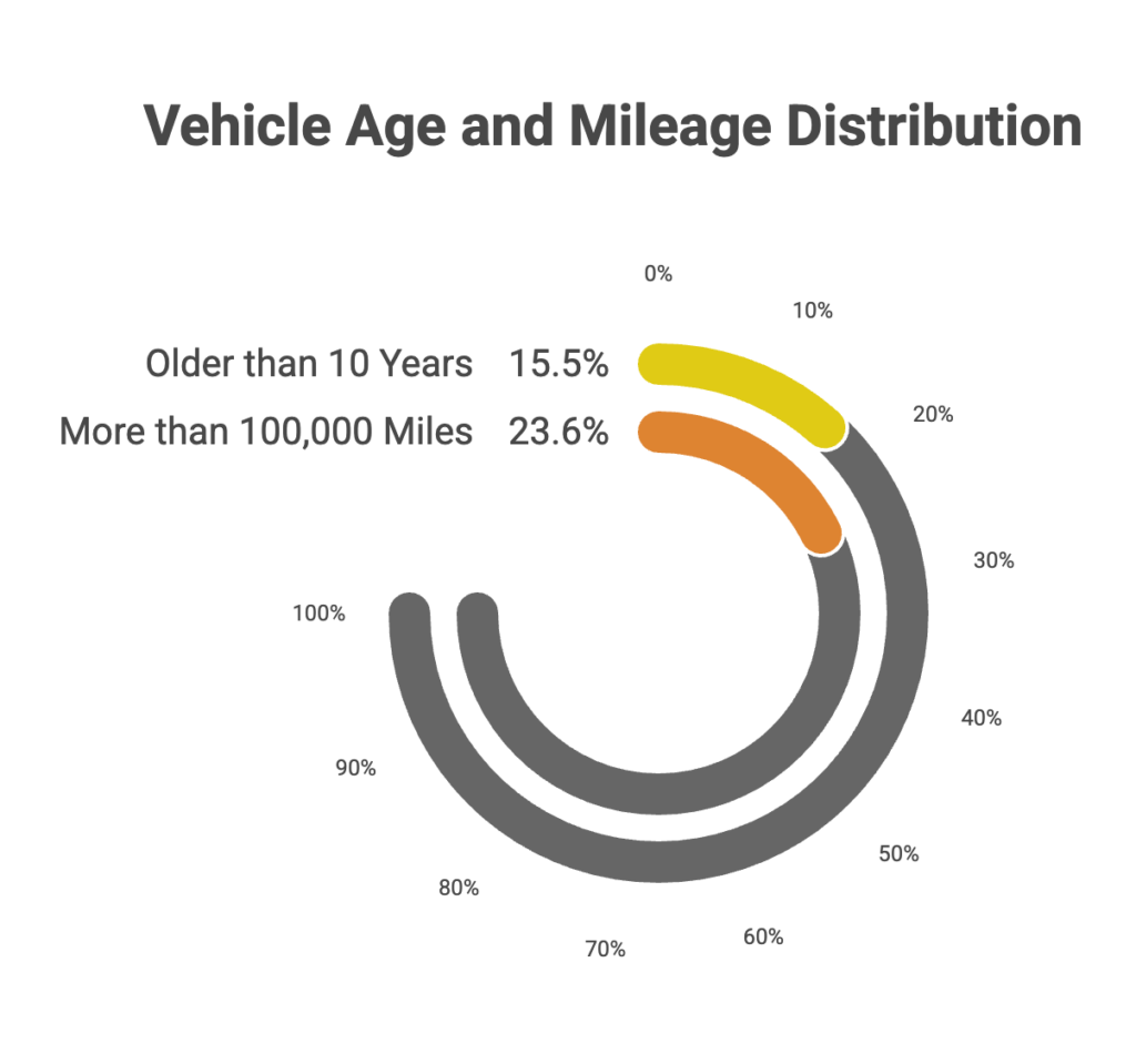 - 23.6% of customers have vehicles with more than 100,000 miles.