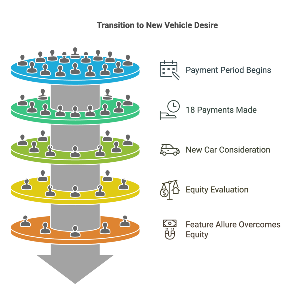 The average car buyer typically starts thinking about their next vehicle after making 18 payments on their current car. This indicates a pattern where consumers begin to seek out newer options even when they may not have sufficient equity built up in their existing vehicle to facilitate a trade-in. The allure of a newer model, with its updated features and technology, often outweighs the practical considerations of their current financial situation.